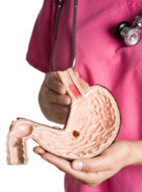 - bol u vidu paljenja ili pečenja, koji se javlja odmah ili do 1 sat posle jela, iznad i ulevo od pupka, i širi se pod levi rebrani luk