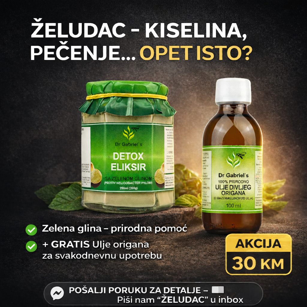 Iskoristite našu specijalnu ponudu i nabavite Dr Gabriel’s Detox eliksir uz besplatno Ulje divljeg origana 100ml – najsnažniju prirodnu kombinaciju za detoksikaciju i jačanje imuniteta.