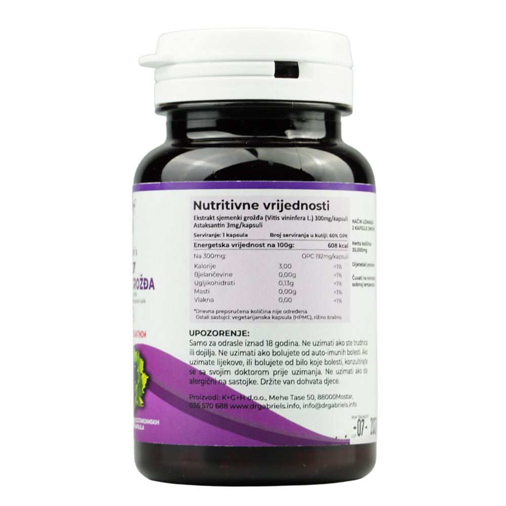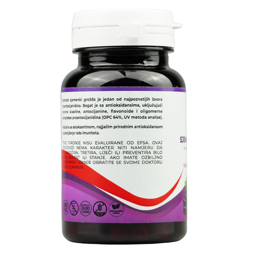 Ono što izdvaja ovaj ekstrakt sjemenki grožđa jest njegova posebno prilagođena formulacija s visokom koncentracijom antioksidansa. Pokazao se iznimno korisnim kao antioksidant za dijabetičare, dok pažljivo odabrane prirodne komponente, uz dodatak Astaksantina, stvaraju izuzetno učinkovitu kombinaciju za održavanje optimalnog zdravlja.