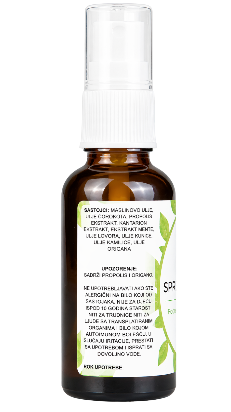 | Način primjene | Aplikirati sprej direktno na grlo i krajnike |